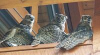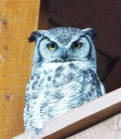 This spring, a mating pair of Great Horned Owls took up residence in the bush along Spring Creek. Two chicks emerged and the local pigeons took flight! Isn't nature wonderful. If anybody has some more pictures of this event please email them in for posting here.